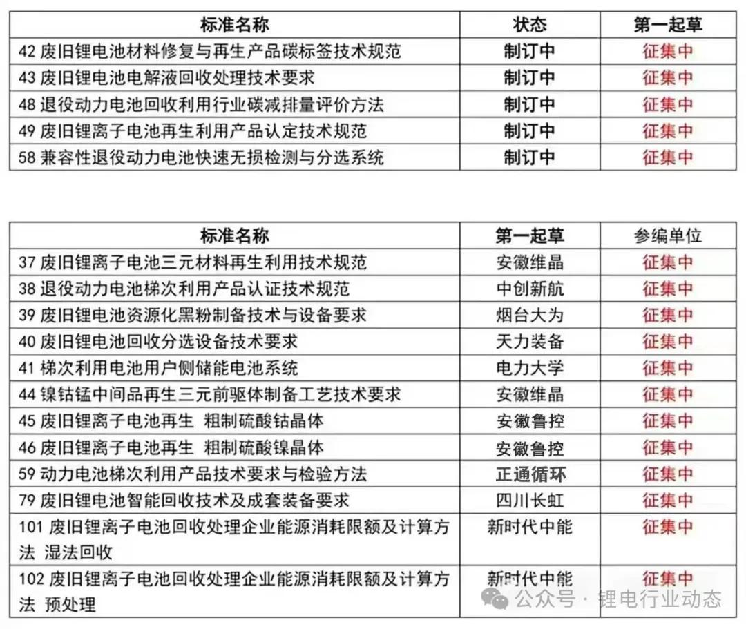 ◆对于搜集《废旧能源电板再生专揽企业坐褥通用条件》等十三项团体圭臬草拟单元的见知