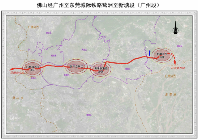 横贯佛山、广州、东莞的佛山经广州至东莞城际铁路又有新理会,6月23日至6月25日,鹭洲至新塘段可研正在批前公示。细则>>